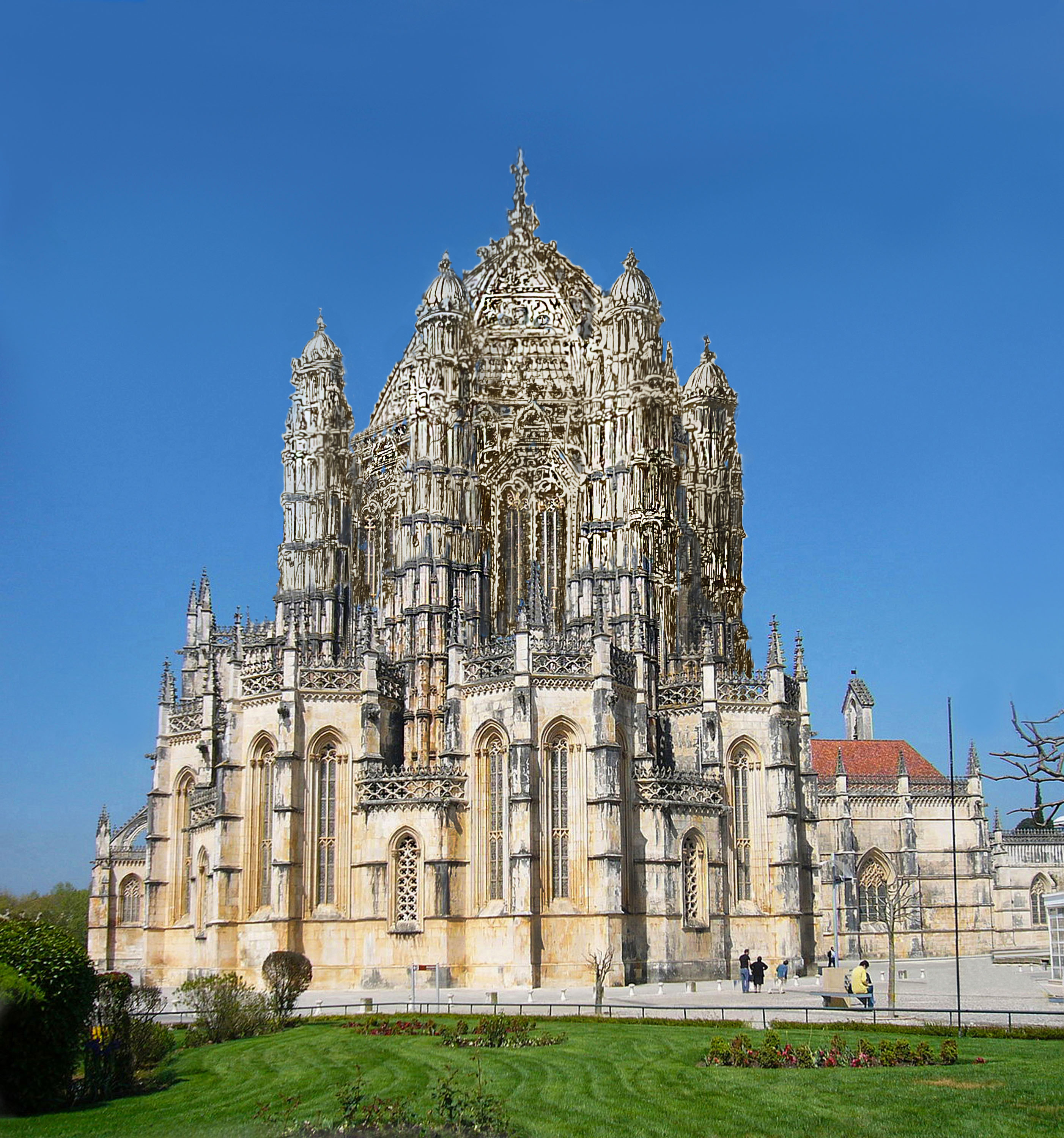 Bathala in Mittelportugal gilt als nationales Denkmal der großen Schlacht gegen das kastilische Heer um 1385. Das Bettelordenskloster ist alles andere als bescheiden errichtet. Einzigartig sind die beiden Grabkapellen. Die König Johann und dessen Frau gewidmete Gründerkapelle ist ein achteckiger Zentralbau  mit reichem Sterngewölbe in direkter Nachbarschaft zur mächtigen Basilika. Höhepunkt der Anlage sollte allerdings der oktogonale weit größere Kapellenbau hinter dem Hauptchor werden, der allerdings unvollendet und nach oben offen blieb. Geplant war der gewaltige östliche Zentralbau, der dem Vorbild der Grabeskirche in Jerusalem folgt mit unübertroffenem bauplastischen Schmuck. Abgeschlossen werden sollte der Kuppelbau mit einer gewölbten Steinrippenkuppel, die von den acht schlanken ebenfalls überkuppelten Türmen flankiert werden sollte. Alles blieb auf halber Höhe liegen, das innere Sterngewölbe gänzlich unausgeführt.